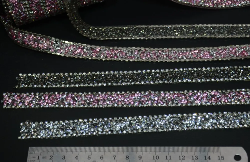 Material : Pedrería de cristal en los bordes, pedrería imitación a diamante de resina en el centro.